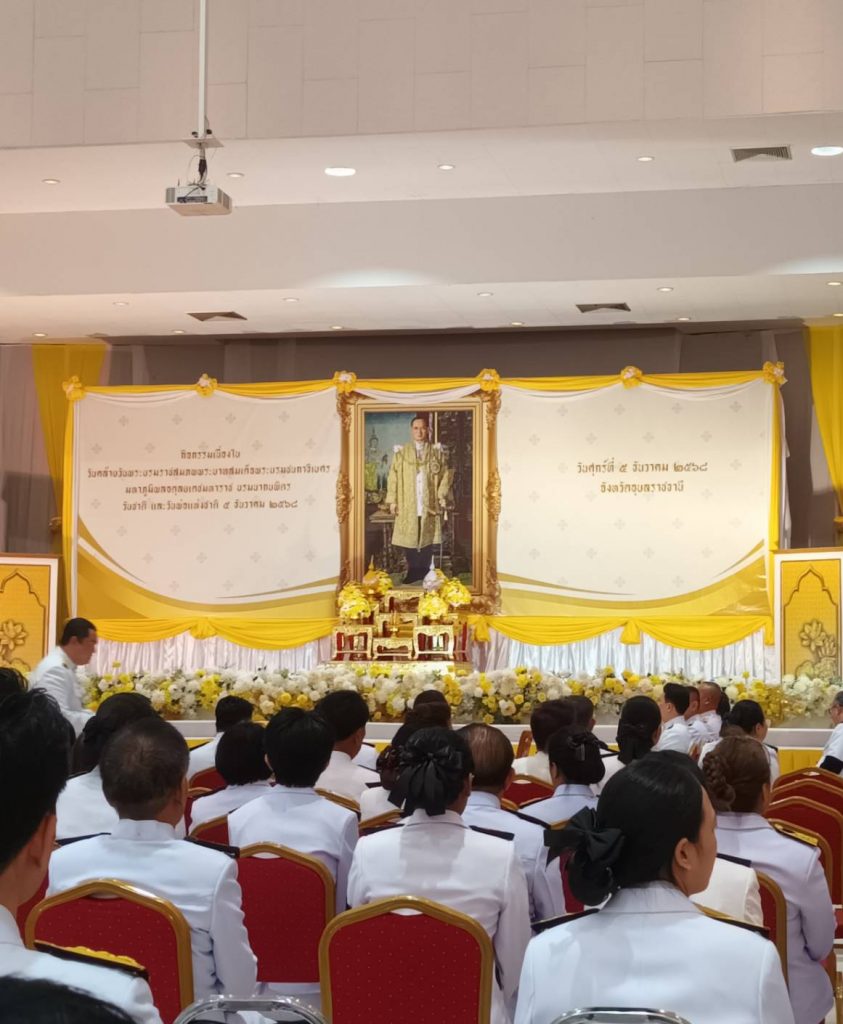วันที่ ๕ ธันวาคม ๒๕๖๘ นายขจรวิทย์ พันธุ์ยางน้อย ผู้อำนวยการสำนักวิจัยและพัฒนาการเกษตร เขตที่ ๔ (จังหวัดอุบลราชธานี) มอบหมายให้ นางสุพัตรา รงฤทธิ์ นักวิทยาศาสตร์ชำนาญการพิเศษ พร้อมบุคลากรสำนักวิจัยและพัฒนาการเกษตร เขตที่ ๔ (จังหวัดอุบลราชธานี) ร่วมพิธีเจริญพระพุทธมนต์ พระสงฆ์ ๑๐ รูป และทำบุญตักบาตรถวายพระราชกุศล พระสงฆ์และสามเณร จำนวน ๘๙ รูป และร่วมพิธีวางพุ่มดอกไม้ถวายบังคม เนื่องในวันคล้ายวันพระบรมราชสมภพพระบาทสมเด็จพระบรมชนกาธิเบศร มหาภูมิพลอดุลยเดชมหาราช บรมนาถบพิตร วันชาติ และวันพ่อแห่งชาติ ๕ ธันวาคม ๒๕๖๘ ณ หอประชุมจังหวัดอุบลราชธานี (ศาลากลางจังหวัดอุบลราชธานี) ตำบลแจระแม อำเภอเมืองอุบลราชธานี จังหวัดอุบลราชธานี โดยมี นายณรงค์ เทพเสนา ผู้ว่าราชการจังหวัดอุบลราชธานี เป็นประธานในพิธี