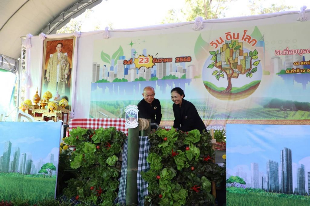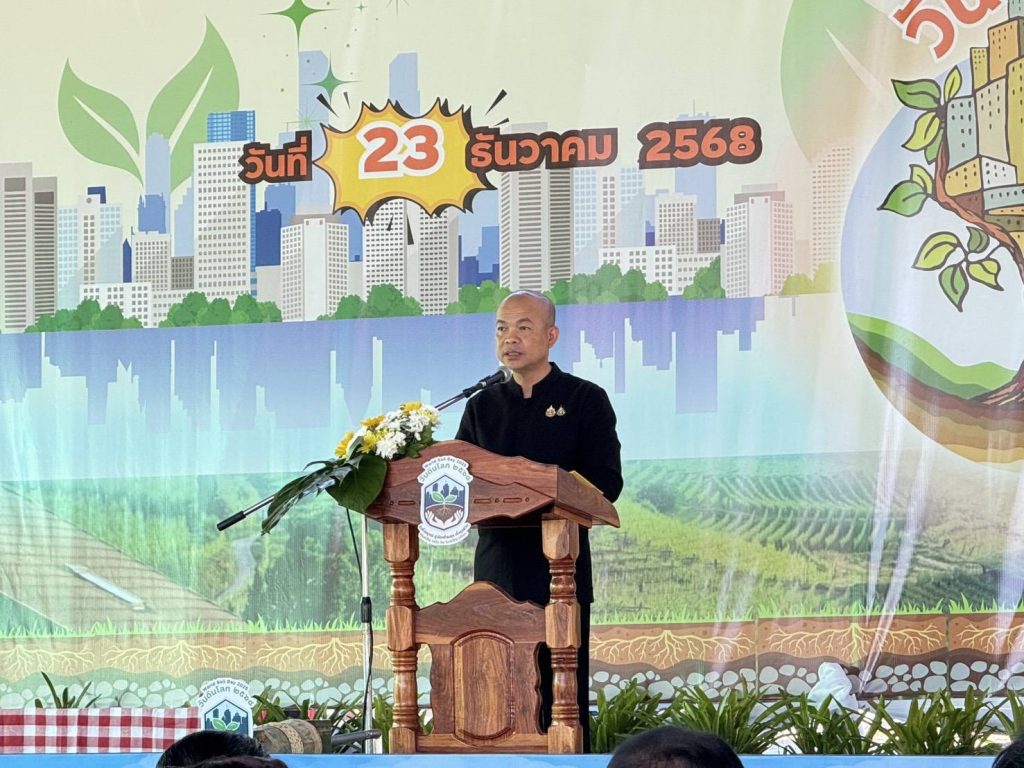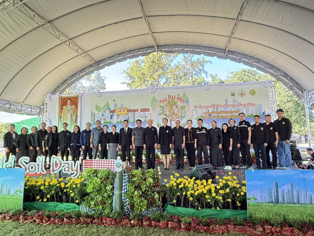 วันที่ 23 ธันวาคม 2568 นายขจรวิทย์ พันธุ์ยางน้อย ผู้อำนวยการสำนักวิจัยและพัฒนาการเกษตร เขตที่ 4 มอบหมายให้ นางสาวพิกุลทอง สุอนงค์ ผู้อำนวยการกลุ่มวิชาการ และเจ้าหน้าที่กลุ่มวิชาการ สวพ.4 เข้าร่วมพิธีเปิด และจัดนิทรรศการงานวันดินโลก (World Soil Day) ประจำปี 2568 ภายใต้หัวข้อ “Healthy Soil for Healthy Cities : ดินที่สมบูรณ์ สู่เมืองที่สมดุลเกื้อกูลชีวิต ณ สถานีพัฒนาที่ดินอุบลราชธานี ตำบลท่าช้าง อำเภอสว่างวีระวงศ์ จังหวัดอุบลราชธานี โดยมีว่าที่ร้อยตรีกรกฎ ประเสริฐวงษ์ รองผู้ว่าราชการจังหวัดอุบลราชธานี เป็นประธานในพิธี ภายในงานประกอบด้วยนิทรรศการเฉลิมพระเกียรติพระบาทสมเด็จพระบรมชนกาธิเบศร มหาภูมิพลอดุลยเดชมหาราช บรมนาถบพิตร และนิทรรศการจากหน่วยงานภาครัฐ เอกชน สถานศึกษา ในการนี้ สวพ.4 ร่วมจัดนิทรรศการเรื่อง ปุ๋ยชีวภาพ ซึ่งเป็นปุ๋ยที่ช่วยฟื้นฟูความอุดมสมบูรณ์ของดิน ปรับปรุงโครงสร้างดิน ทำให้ดินมีชีวิตมากขึ้น รวมถึงแจกจ่ายแม่พันธุ์แหนแดง ปุ๋ยชีวภาพพีจีพีอาร์ และชีวภัณฑ์ ให้แก่ผู้ร่วมงานเพื่อนำไปใช้ประโยชน์ต่อไป