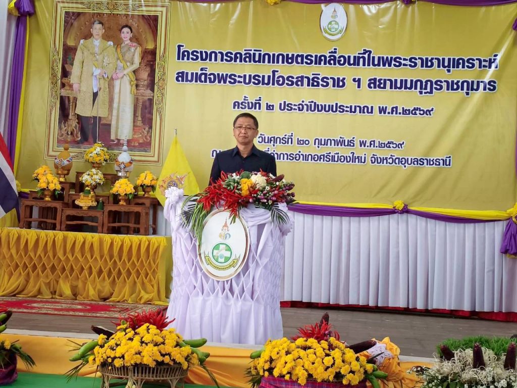 วันที่ 20 กุมภาพันธ์ 2569 นายขจรวิทย์ พันธุ์ยางน้อย ผู้อำนวยการสำนักวิจัยและพัฒนาการเกษตร เขตที่ 4 ได้มอบหมายให้ นางรัชดาวัลย์ อัมมินทร ผู้อำนวยการกลุ่มถ่ายทอดเทคโนโลยี พร้อมด้วย นายบดินทร์ วีระสุข นักวิทยาศาสตร์ปฏิบัติการ กลุ่มพัฒนาการตรวจสอบพืชและปัจจัยการผลิต และ นายพิชัย ทองเย็น เจ้าพนักงานการเกษตรชำนาญงาน กลุ่มจัดการพื้นที่ ไปร่วมงานและจัดนิทรรศการ โครงการคลินิกเกษตรเคลื่อนที่ในพระราชานุเคราะห์ สมเด็จพระบรมโอรสาธิราชฯ สยามมกุฎราชกุมาร ครั้งที่ 2 ประจำปี 2569 ณ หอประชุมที่ว่าการอำเภอศรีเมืองใหม่ อำเภอศรีเมืองใหม่ จังหวัดอุบลราชธานี โดยมีนายภูษิต น้อยโสภากุล รองผู้ว่าจังหวัดอุบลราชธานี เป็นประธาน และนางรัชนีกร พบบุญ เกษตรจังหวัดอุบลราชธานี กล่าวรายงานวัตถุประสงค์ในการจัดงานในครั้งนี้ เพื่อสนองพระราชดำริและเฉลิมพระเกียรติพระบาทสมเด็จพระเจ้าอยู่หัว รวมถึงเพื่อให้เกษตรกรในพื้นที่ห่างไกลสามารถเข้าถึงการบริการทางการเกษตร และได้รับการแก้ไขปัญหาด้านการเกษตรอย่างครบวงจร ซึ่งในการจัดงานครั้งนี้มีเกษตรและประชาชนผู้สนใจเข้าร่วมงาน เพื่อรับบริการทางการเกษตรจำนวนกว่า 300 คน